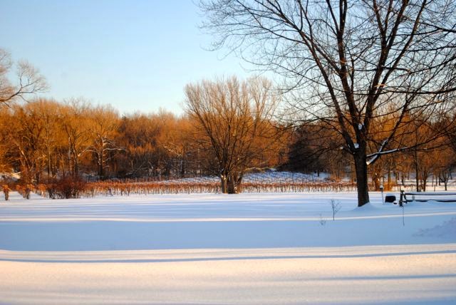 Late afternoon shadows creep along the snow across the street next to the Connelly's house.